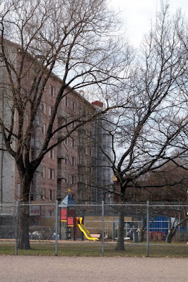 The bright yellow slide makes the gray surrounding more cheerful.I bet it would encourage more youngsters to play.Delightful Daffodils:)